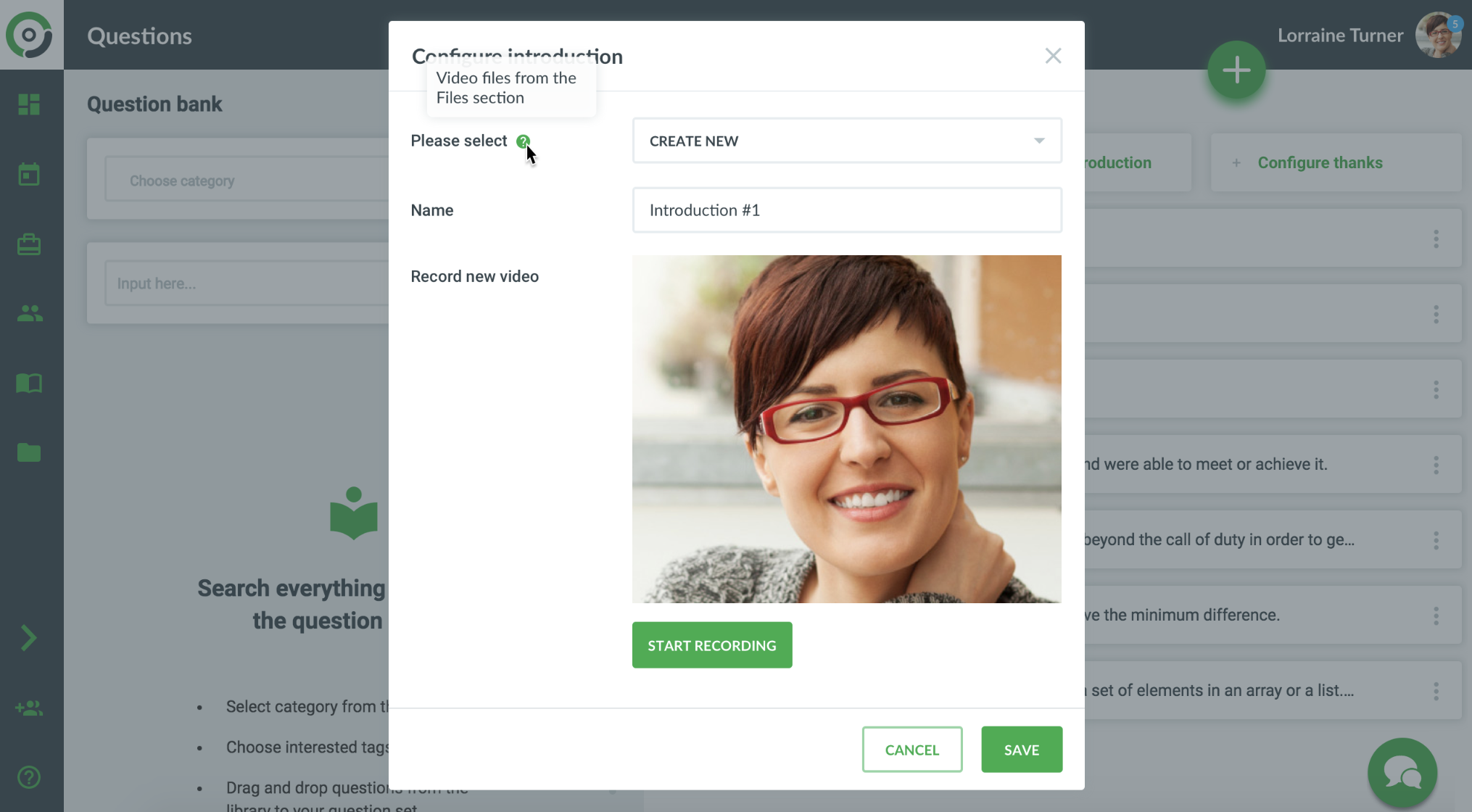 You can create new question set or add video introduction to old question set. Open menu and click on Configure button.