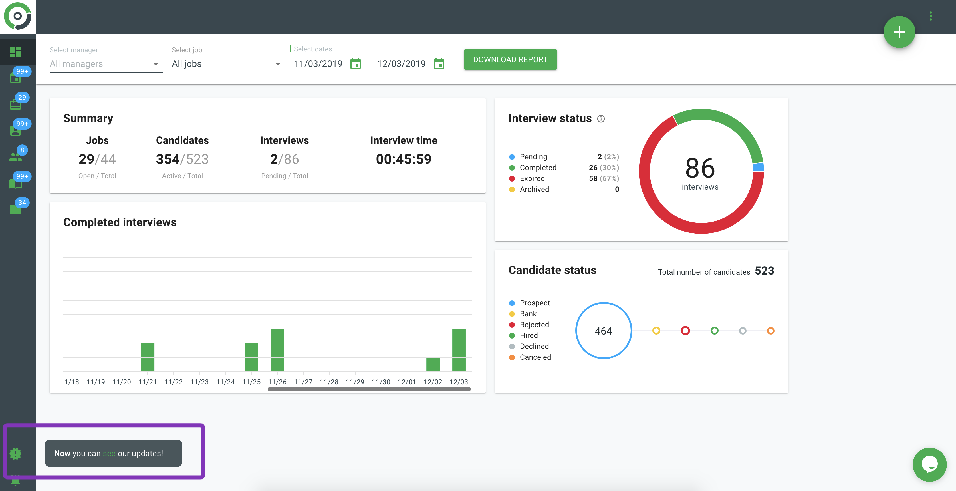 We added a notification in HRs account, to let our users know about new features and updates.
