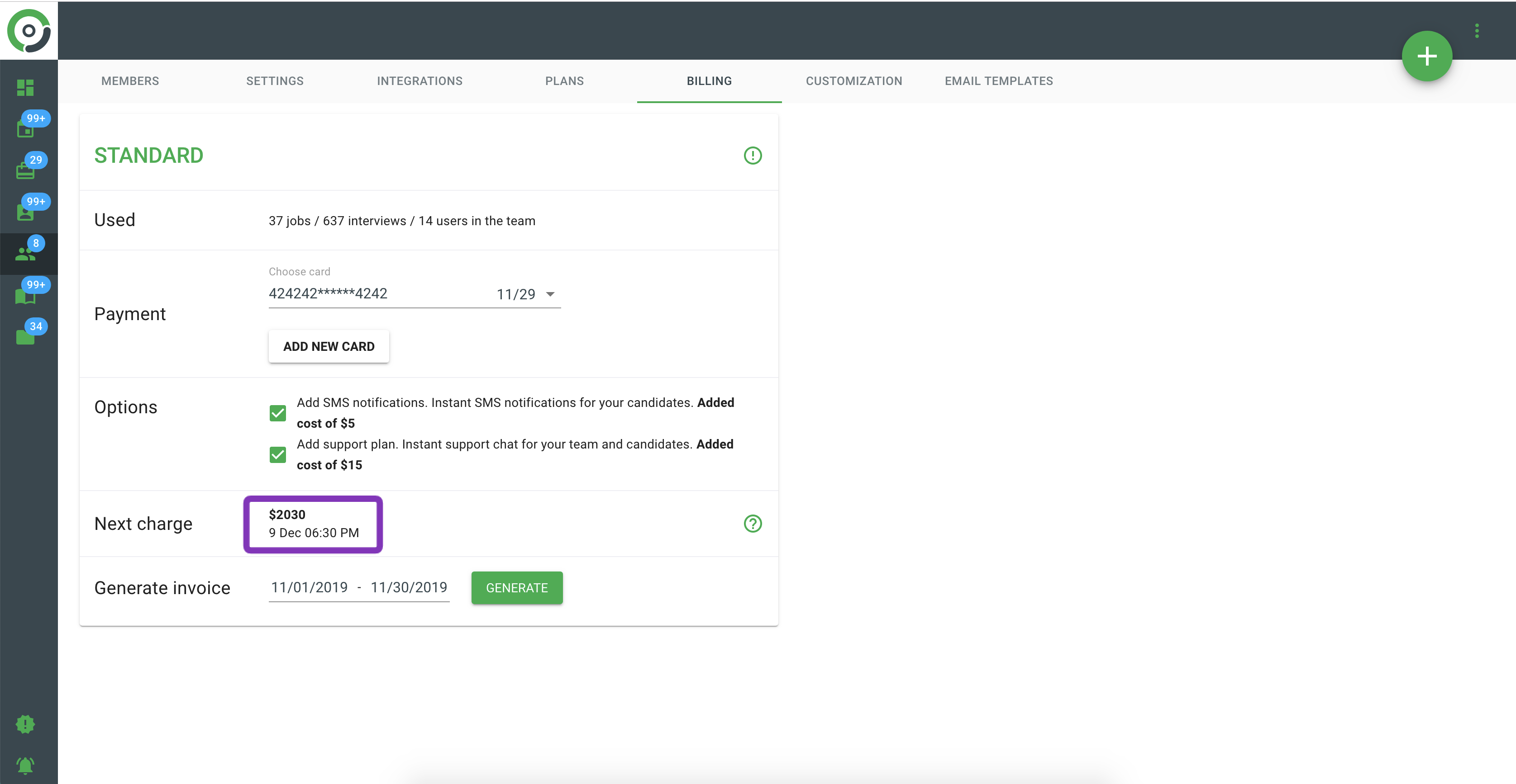 View the next payment amount and date on Teams - Billing page