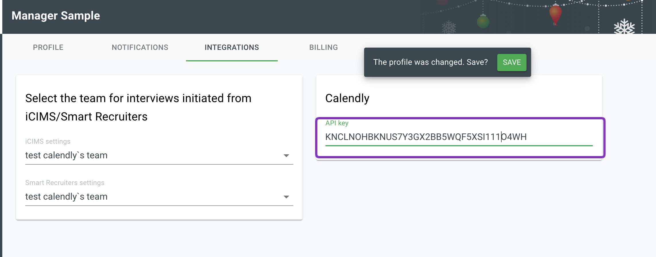 3. Go to Easyhire.me account to Profile settings page - Integration tab